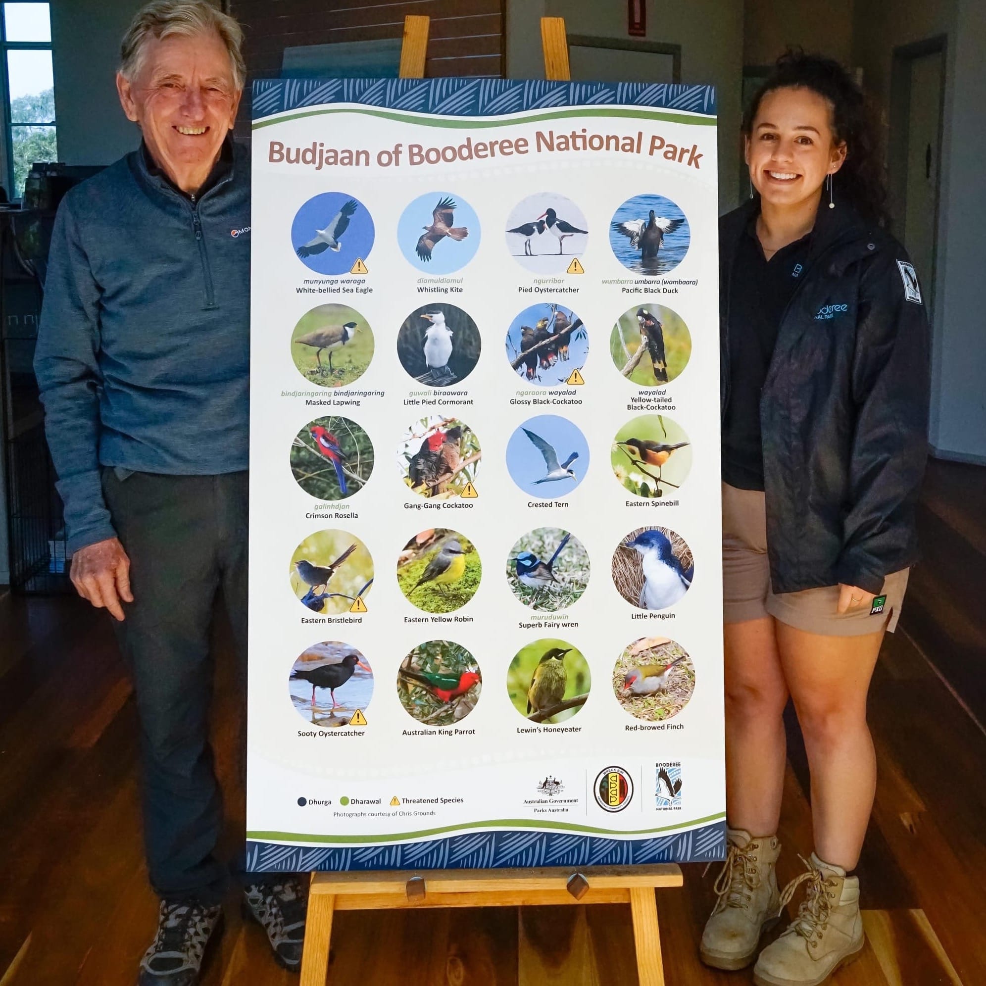 The Budjaan chart aims to showcase 20 of the 202 bird species found in Booderee National Park, with each bird's cultural name.