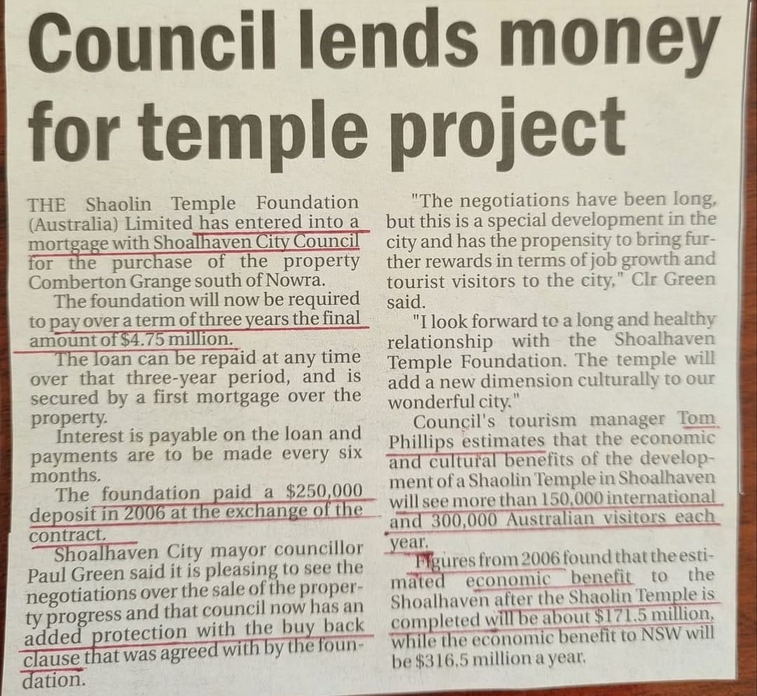 "It will be the first time in 1500 years that another Shaolin Temple will be built and to have it built in Australia is a huge coup."