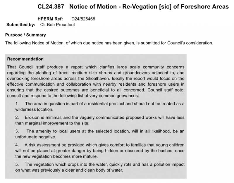 Seconding the motion, Councillor Curly Cashmore said he had lived part-time in the Shoalhaven for 30 years and rented out several appealing oceanview properties on www.sandinmycoffee.com.